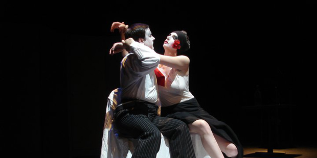 Mime artist Marcel Marceau once mused: to communicate through silence is a link between the thoughts of man. There’s a lot to be said for silence, and more that could criticise an over-reliance on verbatim (British theatre does this well.) Le Voyageur Debout’s Edinburgh festival debut uses a collaboration of words, images, gesture and music to tell the story of Felix’s unrequited love for Filomena.