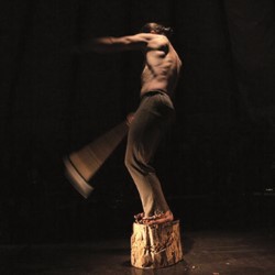 The puppet is tormented and assisted by three acrobats who tumble, fall and perform aerial feats in the small area of the tent. Their presence creates beautiful movement and powerful imagery, however the acrobats convey the torment best when wearing masks that show the artwork of Villiers. His sculptures are evocative, moody and restless, and heighten the show beyond a circus act moving it into the realm of pure fantasy in the vein of The Brothers Grimm.